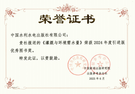 近日,第二十四屆輸出版引進版優(yōu)秀圖書評選結(jié)果公布,我集團《灌溉與環(huán)境需水量》(責任編輯:宋曉 劉向杰)榮獲2024年度引進版優(yōu)秀圖書獎。